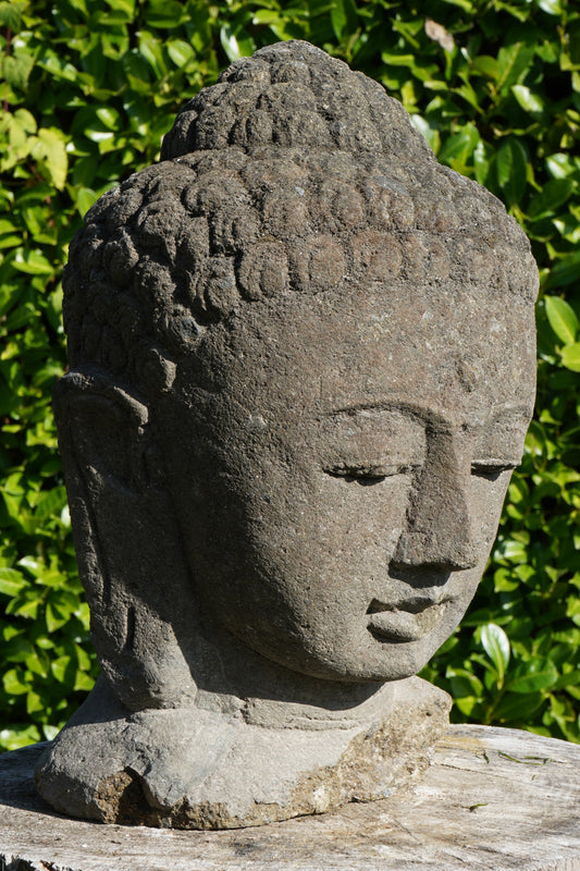 Testa di Buddha in Pietra Arenaria – Scultura Balinese Scolpita a Mano H32cm Rif.B47