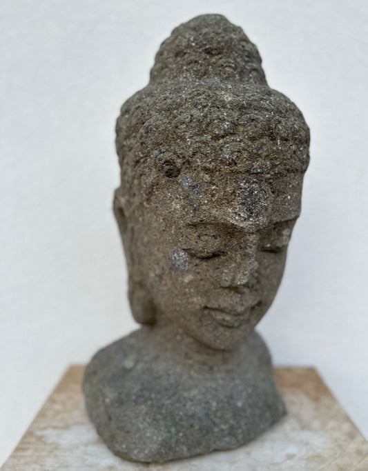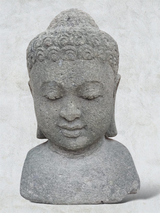 Testa di Buddha in Pietra Arenaria – Scultura Balinese Scolpita a Mano H 31cm B46
