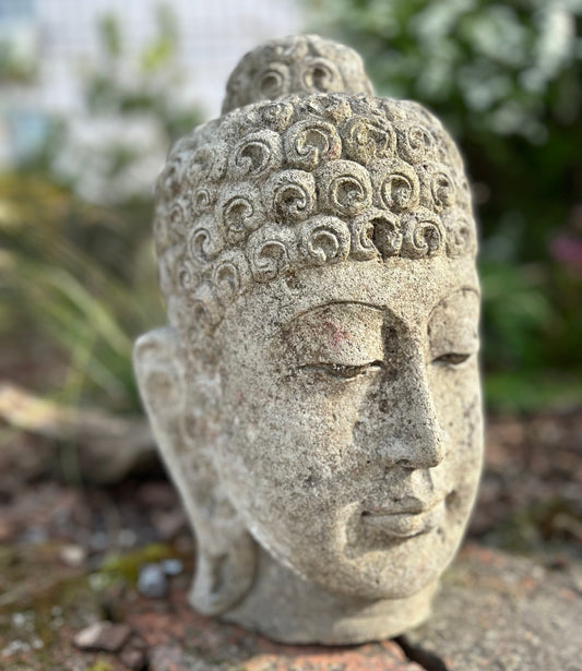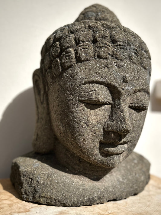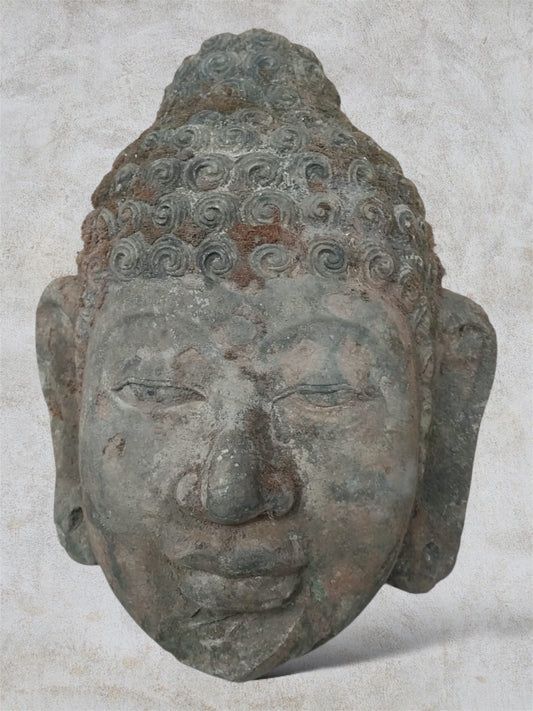 Testa Buddha in Pietra Lavica H40cm Rif. A14