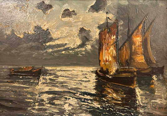 THE PORT by Luigi RIBOLDI oil on canvas hand-signed