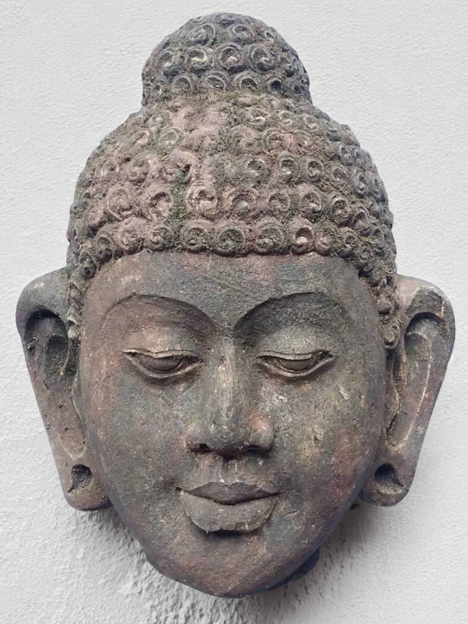 Testa di Buddha Antica in Pietra di Giava da parete H40cm B09