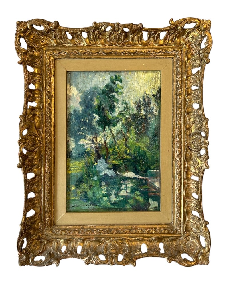 Olio su legno datato 1932 francese. Pittore G.Paul Manceav con dedica sul retro