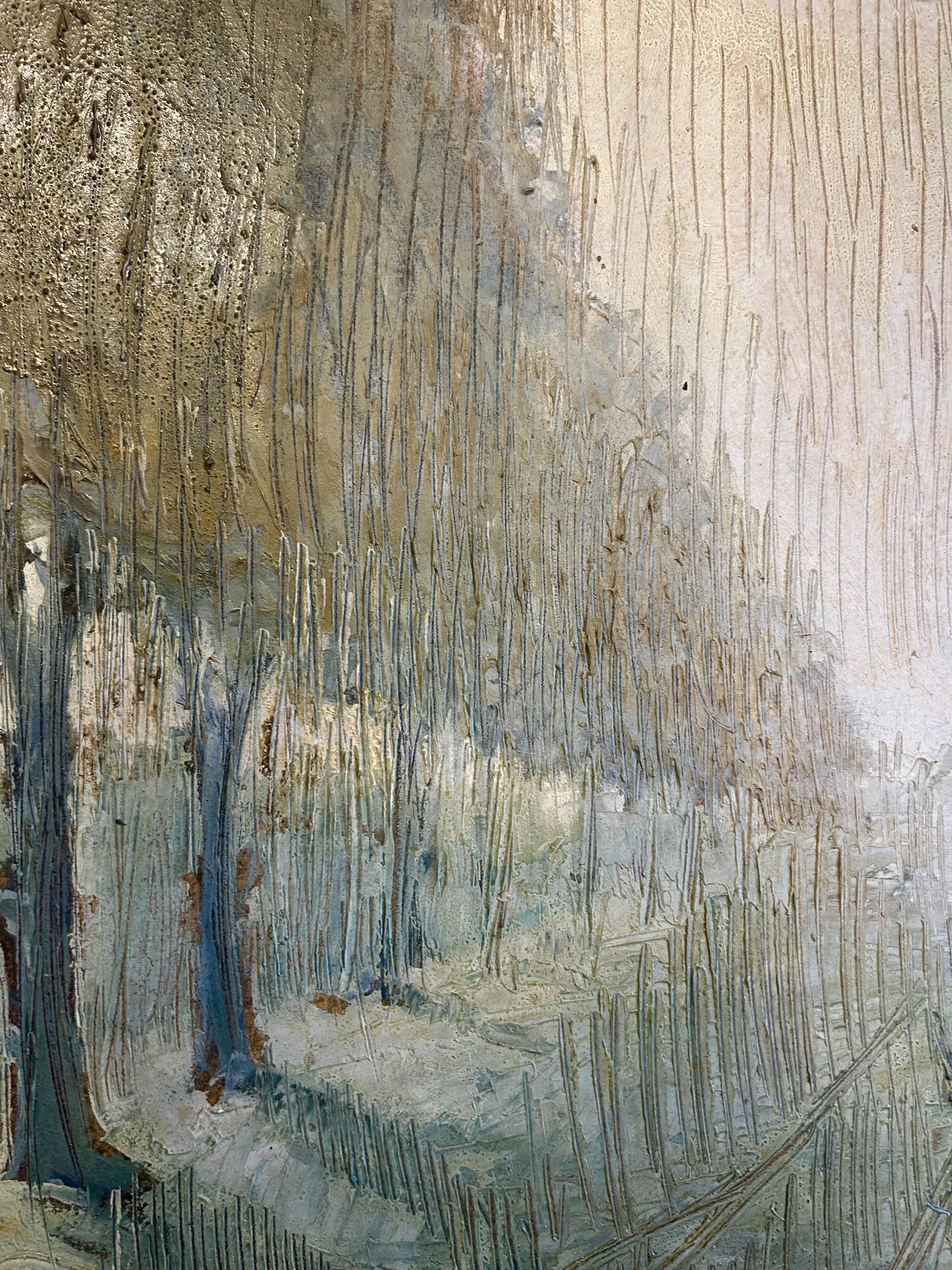 Il dipinto del primo ‘900, rappresenta un viale alberato con foschia che evoca un’atmosfera romantica e malinconica, tipica dell’impressionismo italiano. Gli alberi maestosi che si stagliano in prospettiva, avvolti da una leggera nebbia che attenua i colori, creano un effetto di sfumature delicate. Il viale riflette il movimento e la vita quotidiana, mentre la foschia conferisce un senso di mistero e introspezione all’opera. Questo stile cattura l’essenza della natura e delle emozioni umane in modo suggestivo.
